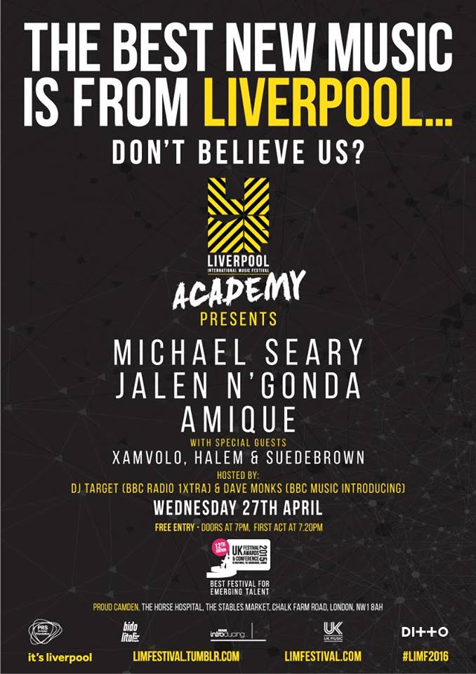 Headlining the showcase is Michael Seary, hotly tipped local DJ who reccently released his well airplayed single “Can’t Say It Back” with Luke Cusato. Joining him at the top of the bill is noneother than the soul/Motown influenced songwriter Jalen N’Gonda, a young man who’s known throughout the Liverpool music scene for his raw and energetic live shows and he’s bound to put on an excellent performance.