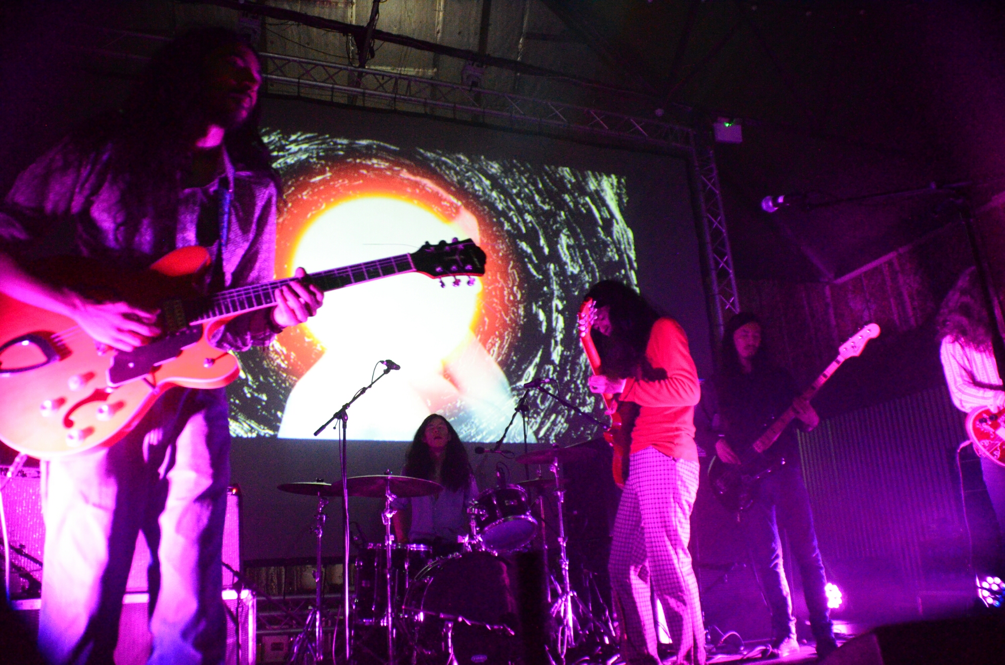 Afterwards, myself and the team quickly rushed next door to the Camp. Aiming to see one of my favourite bands ever Kikagaku Moyo, they were setting up as we arrived. The room quickly packed, it was anticipated. The Japanese psych rockers were brought in as-part of the tremendous Gurugaru Brain showcase.