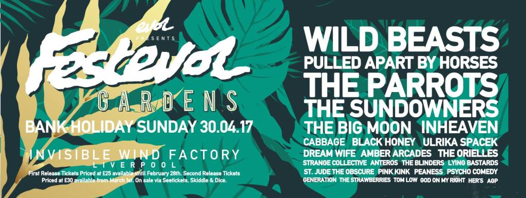 FestEVOL Gardens takes over the Invisible Wind Factory for an unmissable day of live music and features Wild Beasts, The Parrots, Pulled Apart By Horses, The Sundowners among loads more.