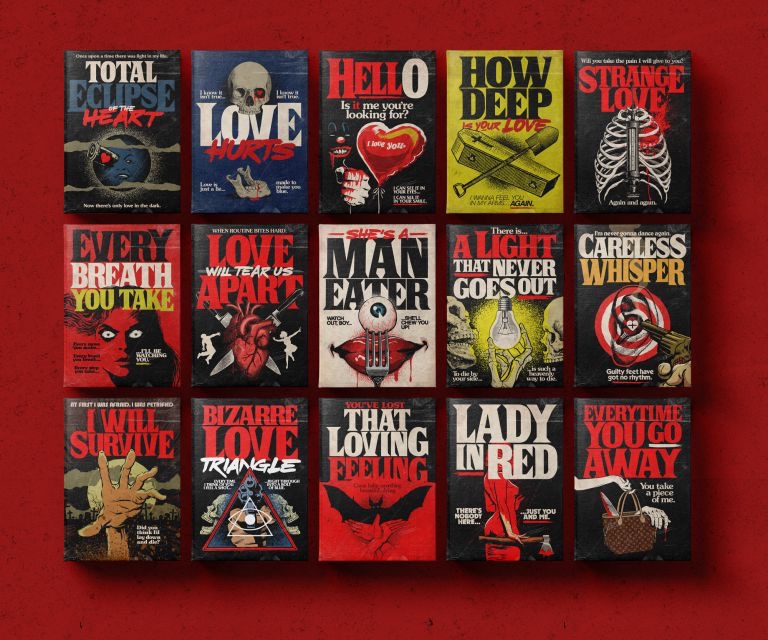 Billy simply took the titles and background for several favourite love songs and stuck a dark twist upon them, creating covers as-if they were Stephen King novels, from New Order‘s “Bizarre Love Triangle”, to Hall & Oates’ “Maneater” to George Michael‘s “Careless Whisper”.