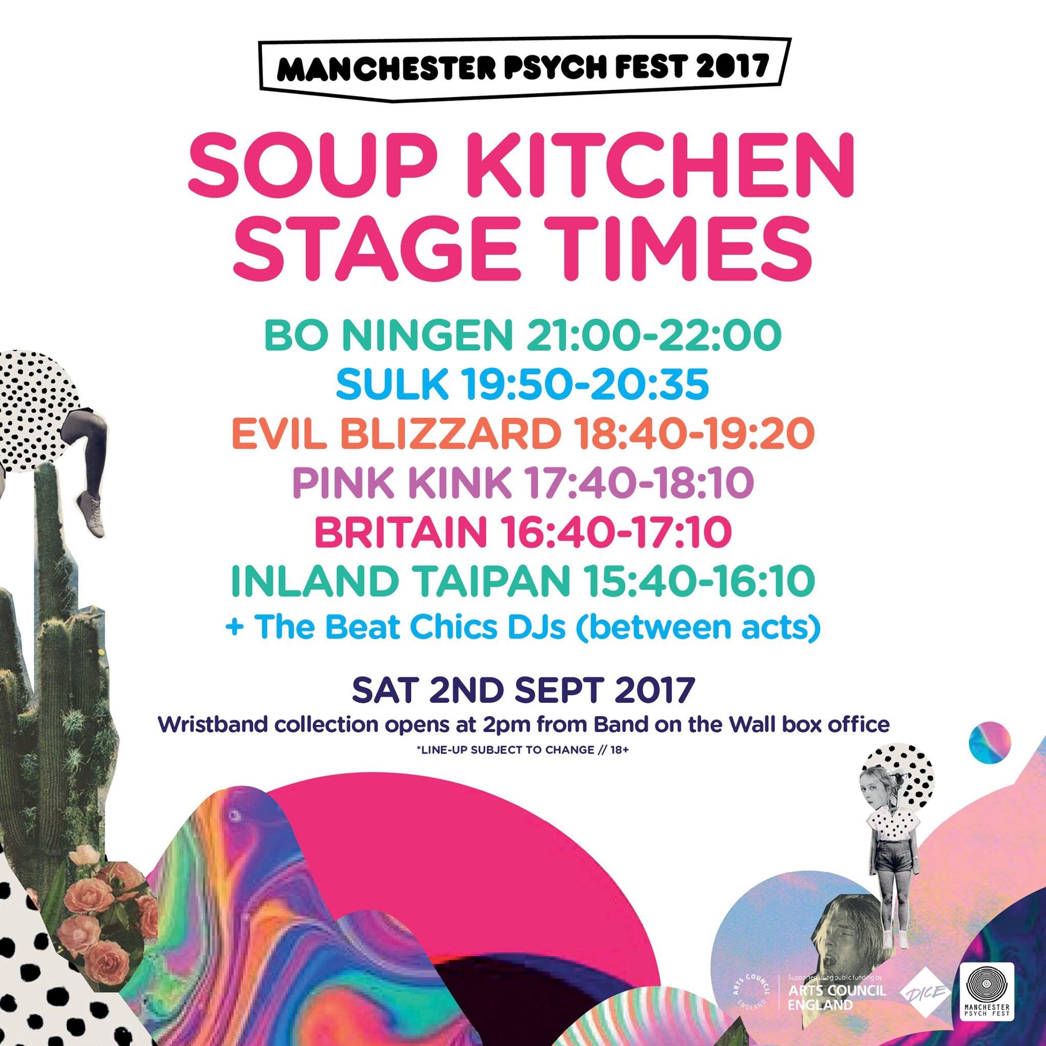 The stage times have now been made available showing each act across the three stages at the Soup Kitchen, Night & Day and of course the headline stage at Band on The Wall.
