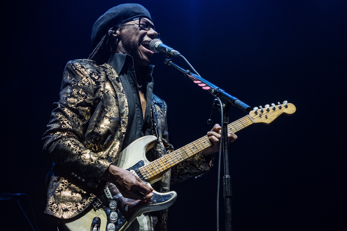 Entering to an explosive uproar from the fevered sold-out crowd at the Echo Arena, Nile and his band bounce into the perfect opener, “Everybody Dance”.