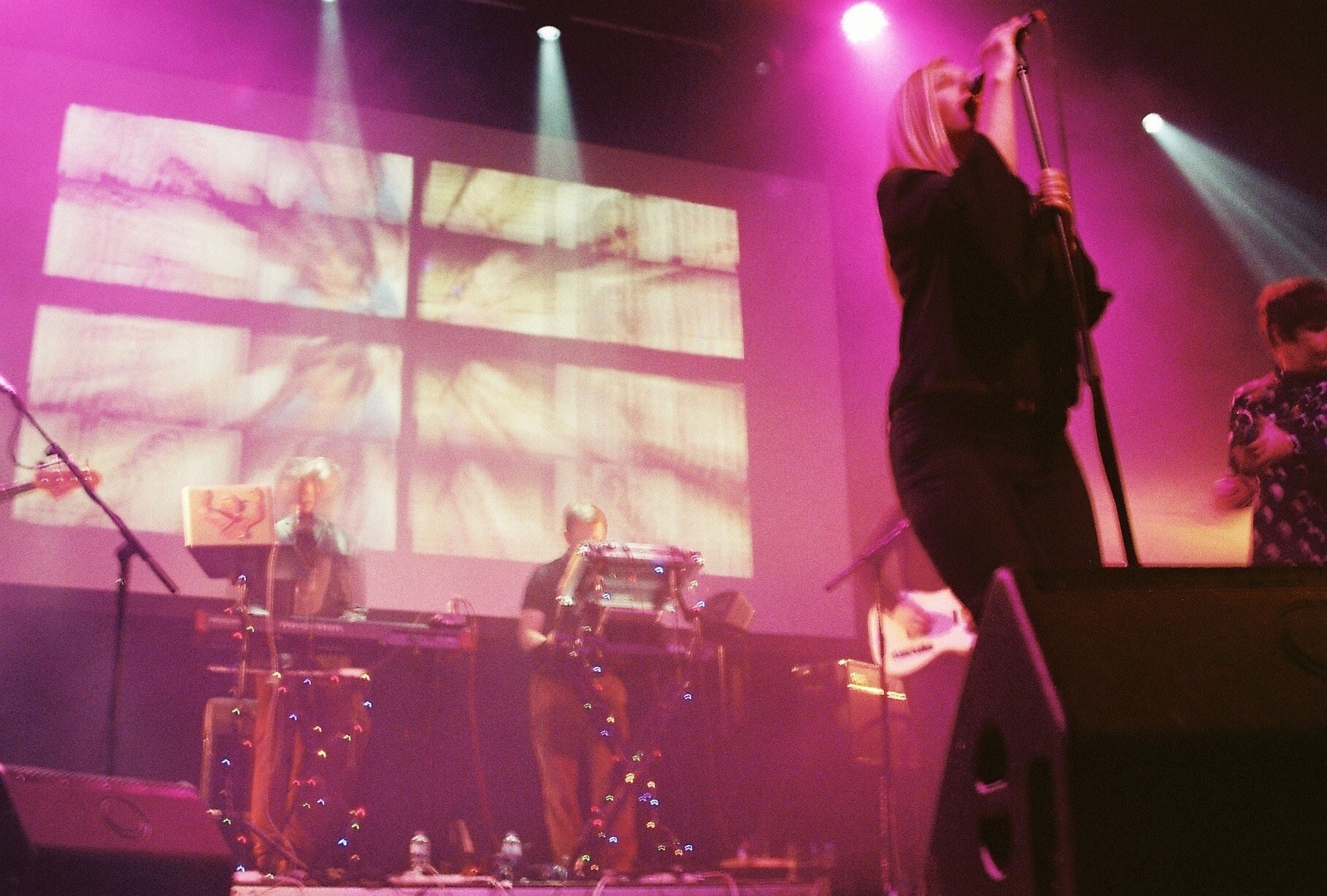 Their ability to combine genres and styles of music, often within the same song, makes Saint Etienne a truly postmodern band, managing to be completely add odds with, yet simultaneously parallel to, the 1960s beatification and fetishising that was taking place at the time in British pop music (Saint Etienne have always been a curious case- too arty for the pop crowd, too ‘pop’ for the britpop parties). The case in point here was the use of the large video screen behind the band during Home Counties song “Train Drivers In Eyeliner“, which showed a slideshow of photographs of New Towns, overpasses, shopping precincts- all sparkling new in their modernity, bustling with people. These places, nondescript by their very nature but dear to their occupant’s hearts, have shaped Saint Etienne’s sound just as much as the capital.