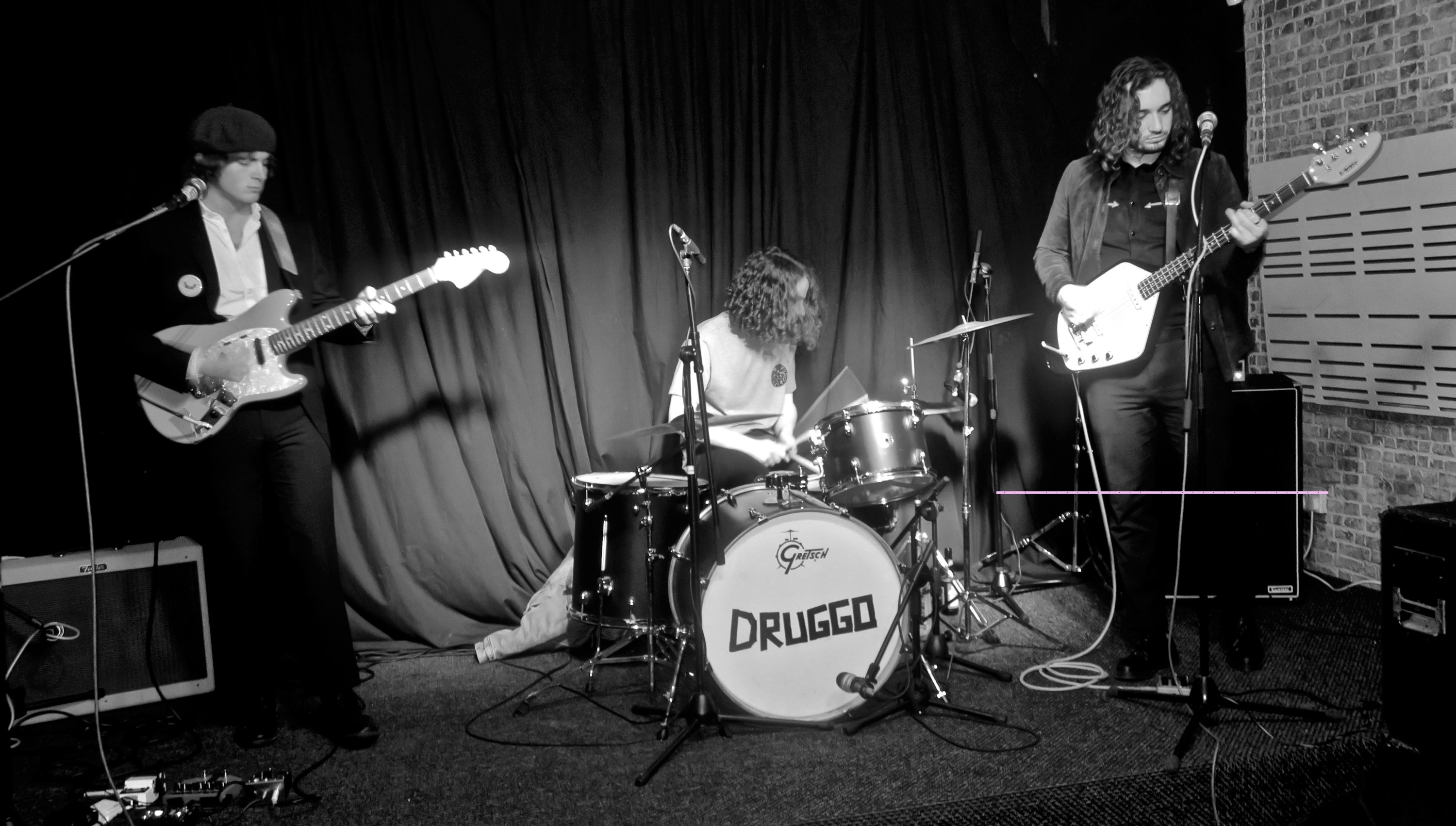 Webster dominates centre stage and it’s difficult to recall a more primal yet metronomic display of drumming, totally hypnotic, completely mental. Guitar patterns are up there with Motorhead and Deja Vega are in the same league as contemporaries Mugstar and Sex Swing for sheer manic energy.