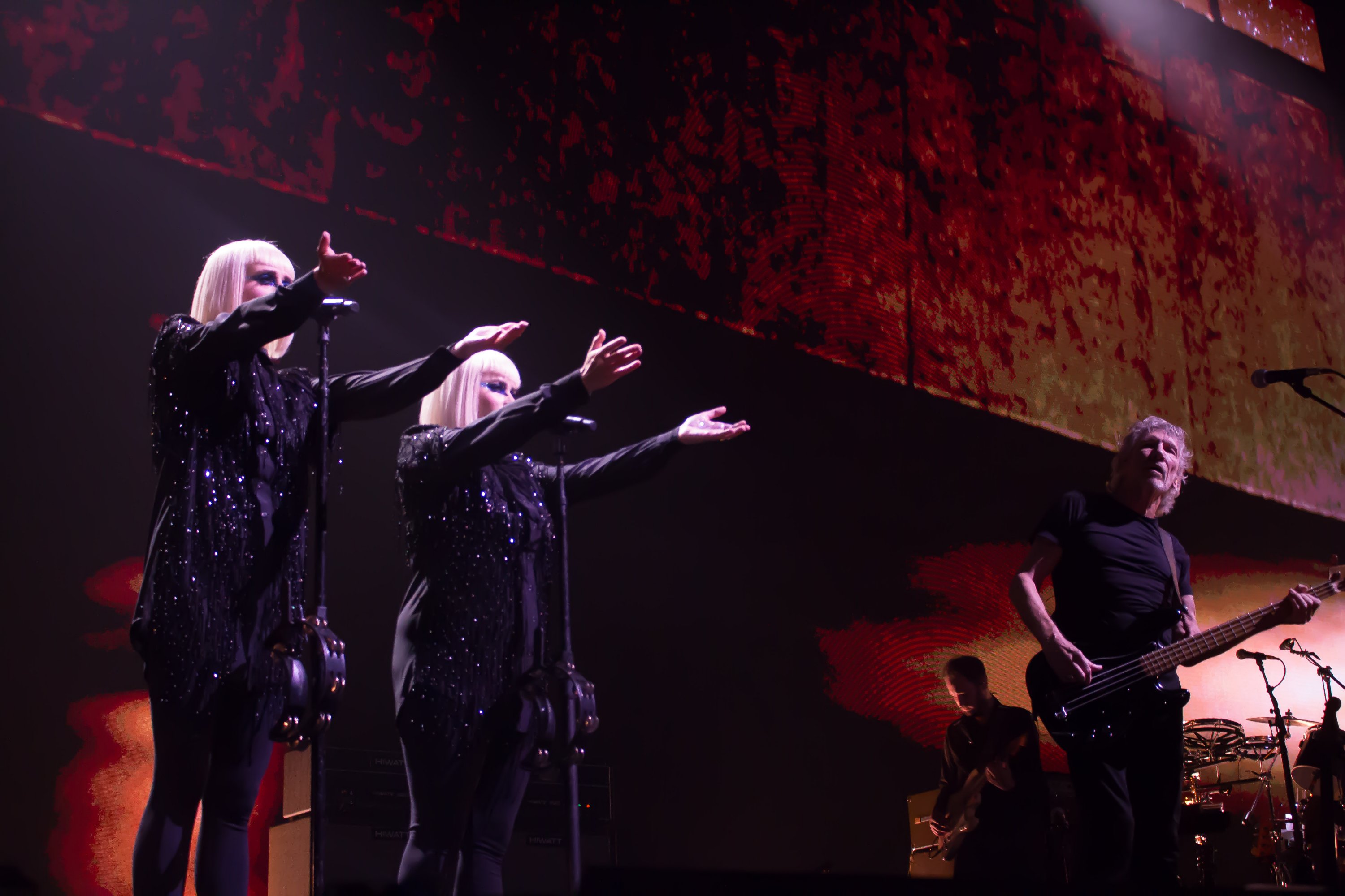 The second half officially chimes in with an extraordinary performance of the 17-minute track “Dogs” followed by “Pigs (Three Different Ones)”, which not only sees the ambitious Battersea projection tell a tale, but Roger Waters and Lucius bring a theatrical hold-in.