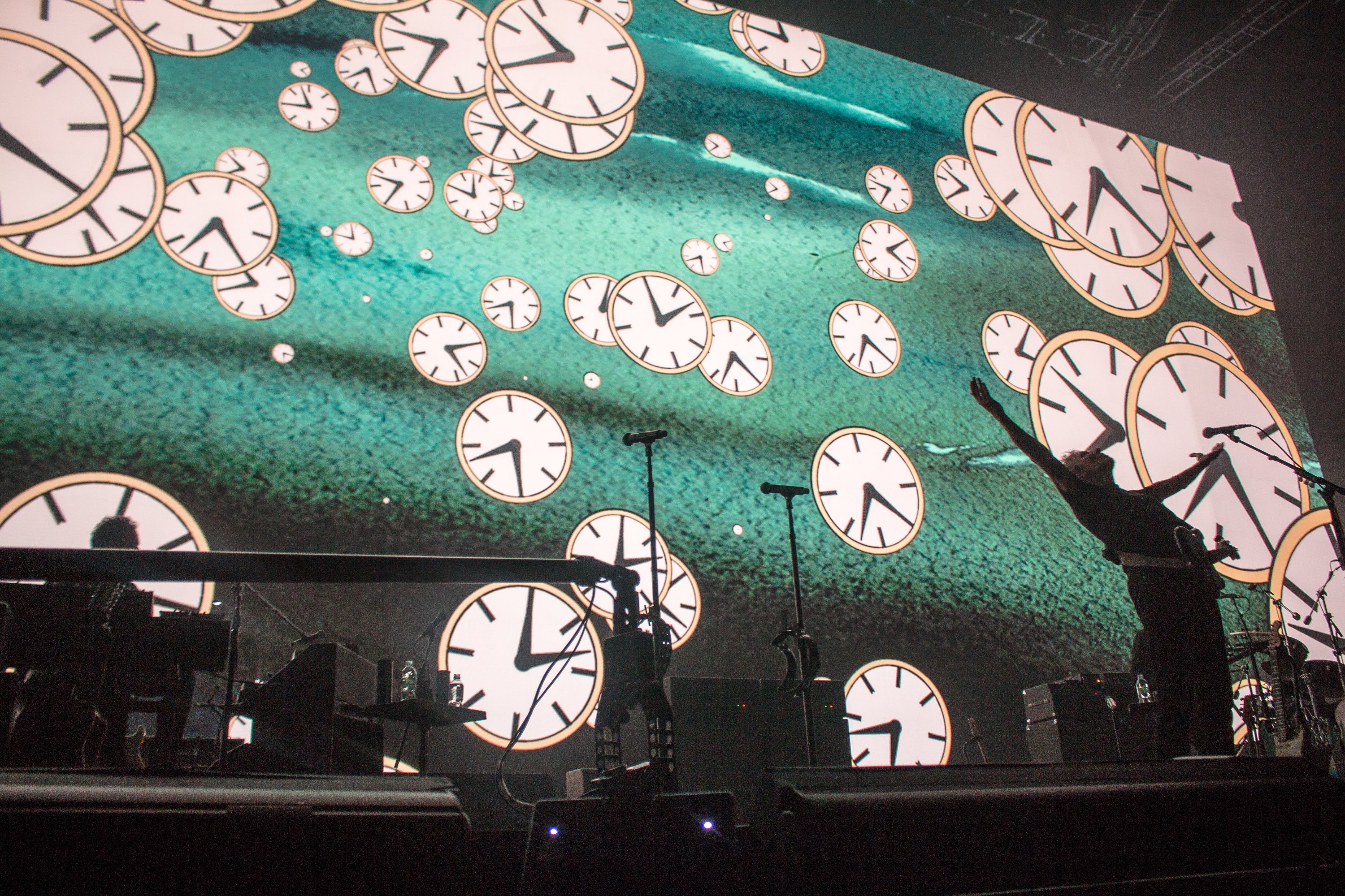 The song perfectly falls into “One of These Days“, which quickly shows the band knows comfortably what they’re doing. Lifting once again, the clocks tinker through the speakers at alarming rates, as the screen shows one of Floyd‘s most-remembered visuals as we enter “Time