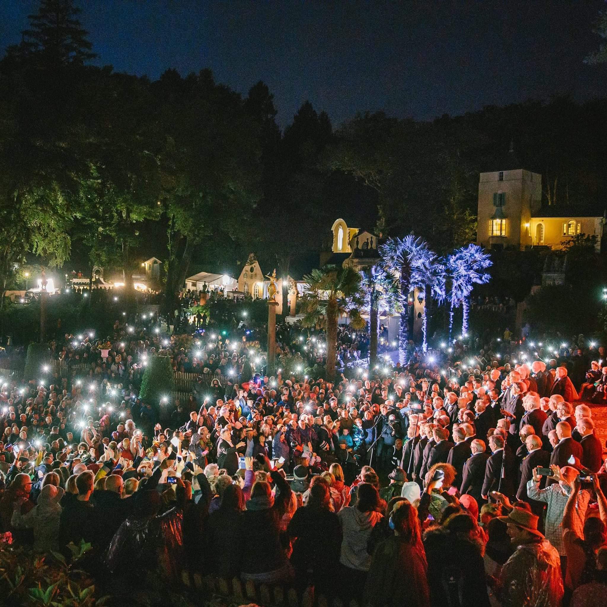 Luckily, for the Brythoniad Welsh Male Voice Choir, who had predicted a name change to Wet Wet Wet, the rain continued to hold off into the night. Over the years they have become a No. 6 institution, introduced as Festival No 6’s ‘very own boyband’, the men with a combined age of over 4000 walked out onto the packed out Central Piazza to a recording of their legendary performance of New Order‘s “Blue Monday“. They bid an emotional farewell to Portmeirion with their ethereal harmonies, which echoed through the dimly lit, cobbled streets and a rendition of “Design for Life” by The Manic Street Preachers.