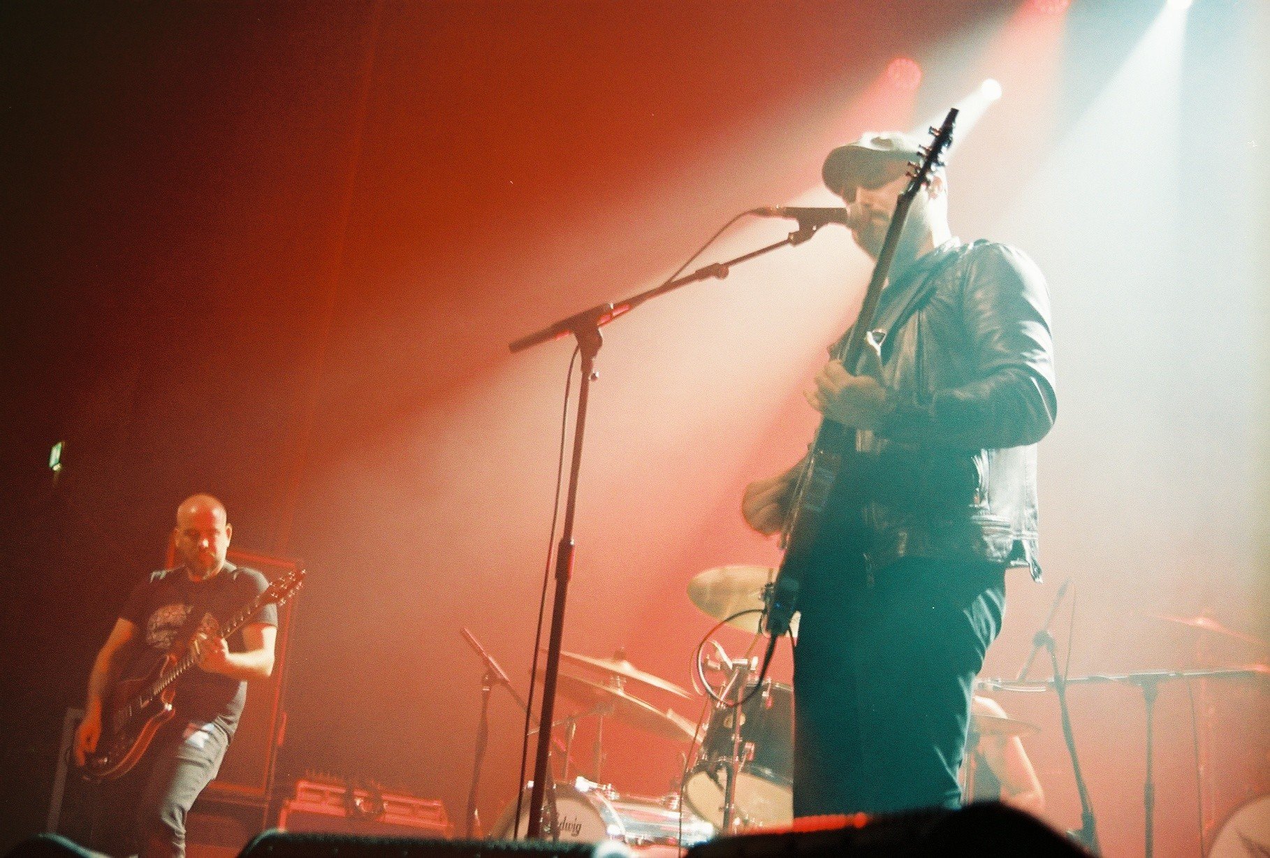 The support band of the night is Leeds quartet Skull, who start the party with driving, monolithic riffs from their debut album Thoughts Of The Others, which are less grunge, more desert rock, which was roughly contemporary (grunge emanating from the Pacific Northwest, desert rock a few hundred miles south in California). ‘Heavy’ in the traditional sense of the word, filtering through the likes of Black Sabbath and The MC5 and blazing the result out into the sweatbox environment that the Ritz had rapidly become, Skull fire through their set with carefree abandon, tight but able to fire off into incendiary guitar solos while still locked into swampy, thick grooves which coil menacingly over hard-hitting beats and bluesy howls. Skull are a fast-rising outfit who have taken the opportunity they have been given here, a chance to win over a sold-out, receptive crowd- and running with it as far as possible.