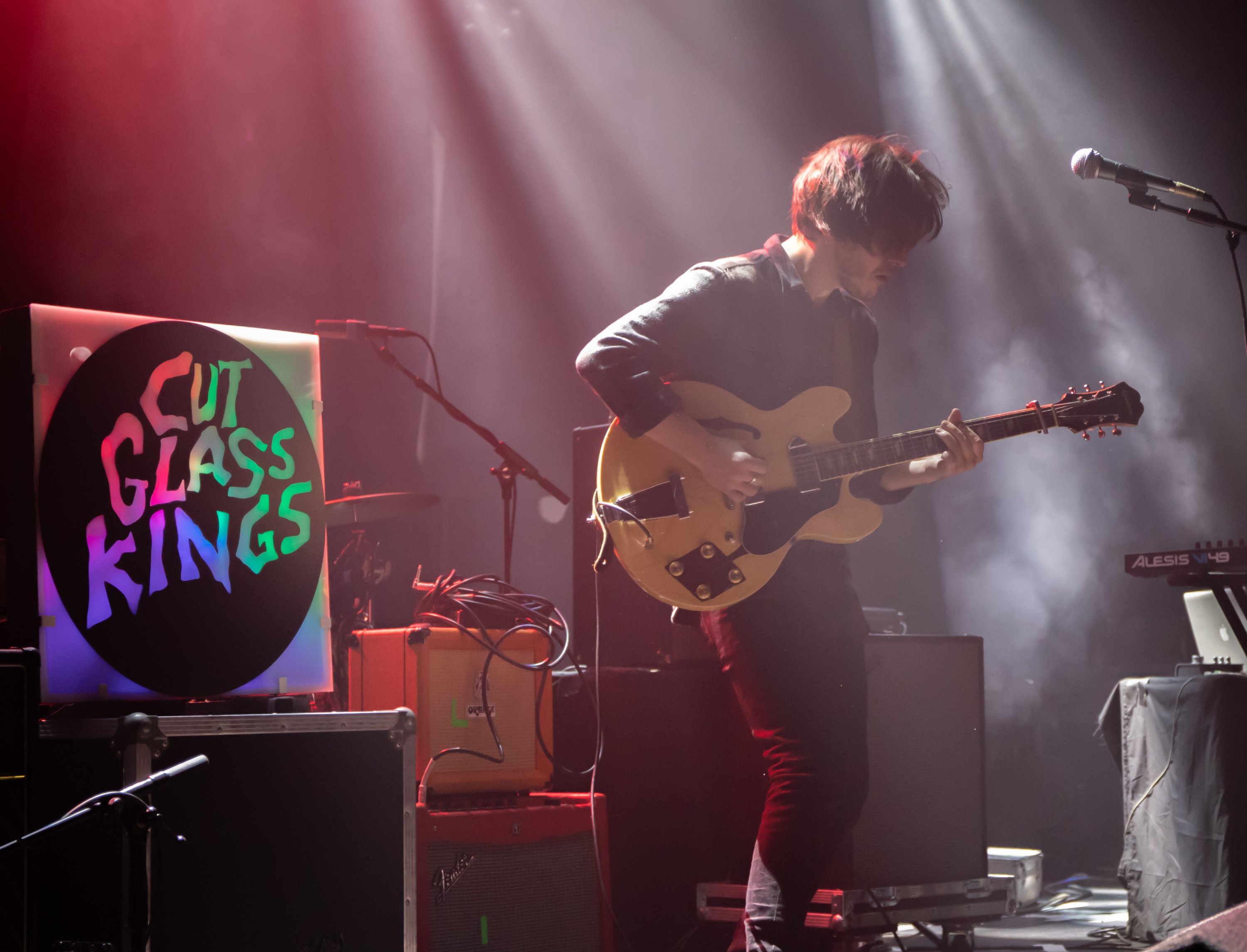 Wandering past the extensive and impressive merch stand I have to check my watch as it sounds like the seven-piece Coral have already started. Heading to the stage I see two solitary figures creating a sound not heard since a duo since I saw The Black Keys way back in the day. A flashing mobile disco light tells us this is Cut Glass Kings and despite gagging for a pint I remain transfixed for the remainder of their set.
