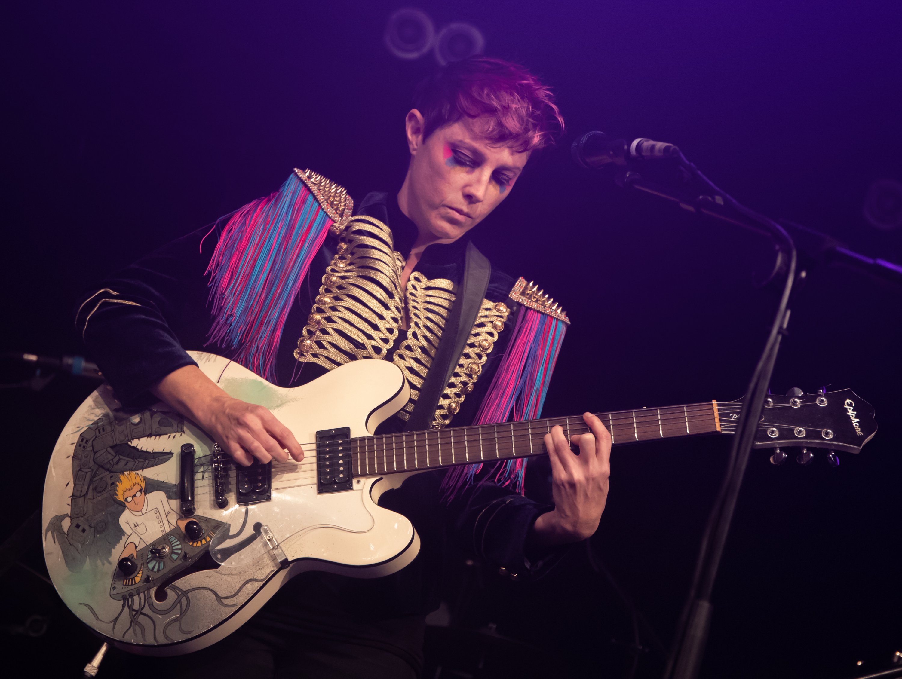 With Peaches hair and Adam Ant’s jacket, Louisa Roach has a stage presence. She draws your gaze from the second she starts with “Resister“, songs like this don’t pop up on your playlists every day. For someone so on the button, her voice often swerves into some old time country territory, much like Cat Power, that belies their angsty approach, again – not a bad thing. Before “Pit Pony“, Roach asks “Hope you don’t mind a little love song before we start dismantling capitalism.”