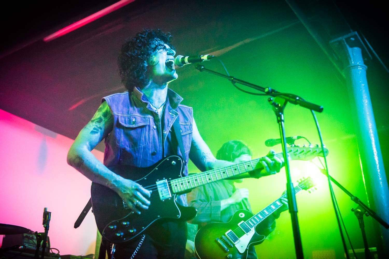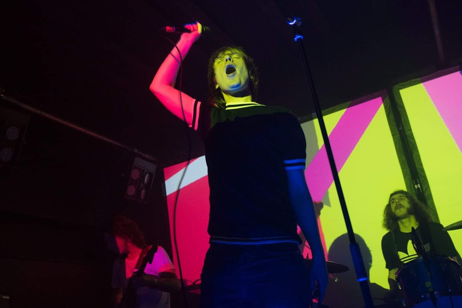 Nathaniel Cummings is an enigmatic frontman despite resembling an ever so slightly Thriller era Jacko once the make-up starts to run. Swaddling the here and now with unashamed glam rock moments Peach Fuzz own the stage. New single “Destroy the Evidence” has a lot more guts than its recorded counterpart, and apart from the odd lapse into love song territory the set remains visceral.